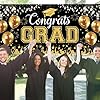 CCINEE 3pcs Congrats Grad Banner Class Of 2025, Black And Gold Graduation Backdrop for Yard Signs Porch Hanging Indoor Outdoor Celebration 2025 Graduation Party Decorations