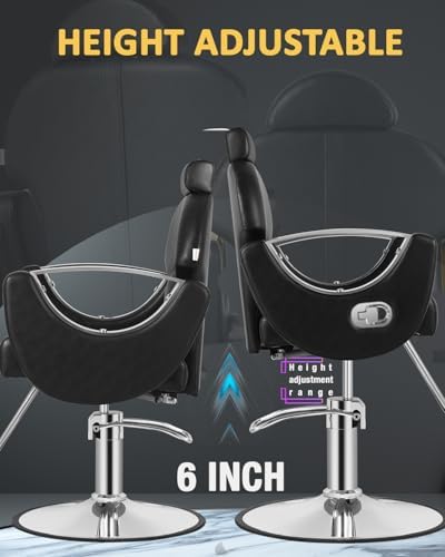 - 【Practicality at Its Best】With a reclining backrest adjustable from 90 to 135 degrees, a 360-degree rotatable with lock, and a 6-inch height adjustment function, our salon chair offers unparalleled convenience during haircut services. The upgraded butterfly foot pedal enhances stability and appearance, while the removable, adjustable headrest accommodates customers of different heights.