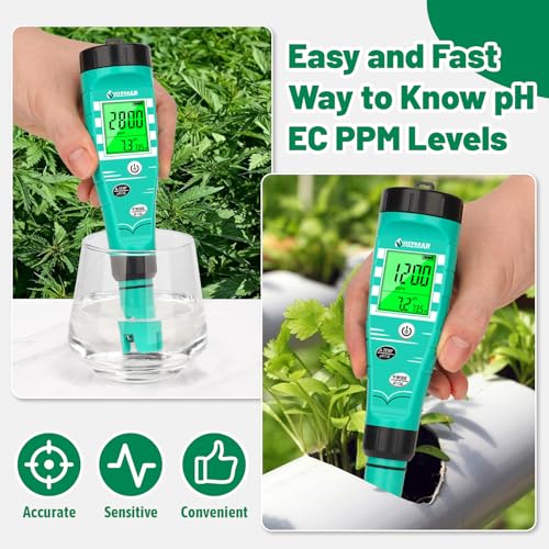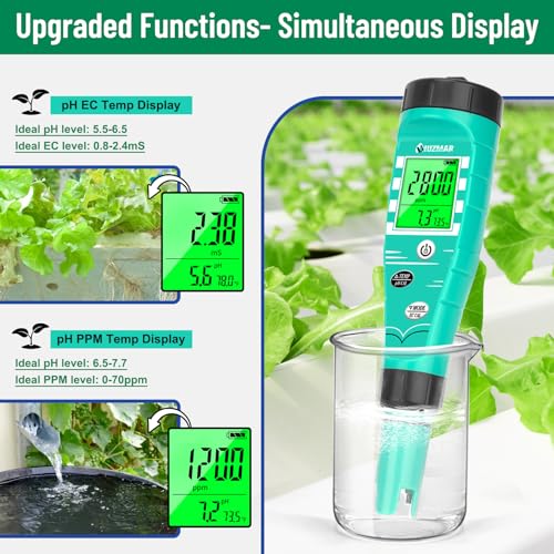 - [Fast & Easy Measurements] Get instant, reliable results at the touch of a button. Perfect for hydroponic hobbyists, quick pH, EC, TDS & temp reading on same screen. With its user-friendly interface and accurate readings, this tester takes the guesswork out of maintaining hydroponic system.