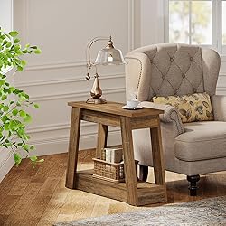 Aesthetic Appeal: This wood side table boasts a rustic aesthetic, and its warm wood finish adds a touch of natural elegance to any room. The clean lines and minimalist look create a timeless charm that effortlessly complements a variety of interior styles Storage Solution: Meet your needs in storage and display with this 2-tier end table! The lower shelf offers practical storage for your favorite books while the spacious tabletop is a great spot for displaying decorative items Versatile Use: Place it beside your sofa in the living room as a convenient spot for your coffee cup and remote control. In the bedroom, it can serve as a nightstand, holding your bedside essentials like a glass of water and reading materials Sturdy Construction: Crafted from high-quality engineered wood, this Tribesigns side table is built to last. The robust trapezoidal frame ensure exceptional stability, so you don't have to worry about it wobbling or tipping over Effortless Assembly: Dreading the setup process? Fear not. The package includes all the necessary parts and a detailed instruction manual, making the assembly a breeze. In a short time, you'll have a functional bedside table to enhance your living space