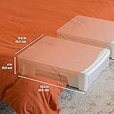 DIMENSIONS: Outer - 23.75"L x 17.81"W x 6"H; Inner - 21"L x 14.6"W x 4.12"H. We recommend measuring the space under your bed to ensure a perfect fit. UNDER THE BED: Designed to maximize storage space under the bed for shoe storage, clothing storage, bedding storage, wrapping paper storage,and out-of-season essentials. Perfect organizer for tight spaces, bedroom and dorm storage. SPACE / TIME SAVING: The under bed storage bin is designed to fit under most beds to easily slide in and out for easy access to stored items, simply using the smooth-glide drawer. No need to open a lid and put it back to under the bed every time. Secure lids will ensure that all your items remain dry and dust-free. STACKABLE AND MODULAR: This under the bed storage bin height is 6 inches and grooves on the lid securely lock in one on top of another when stacked. You can fit multiple units together to build your own customized storage system. MADE IN USA: Manufactured in the USA with global materials. Simple, space-saving storage and organization solution great for organizing the home.