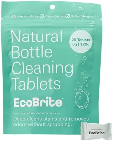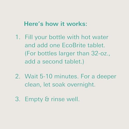 - Simple Ingredients: Clean your stainless steel water bottle with an Ecobrite tablet. Just drop it in, let it fizz, and watch as the tablets lift grime and dirt away without scrubbing!