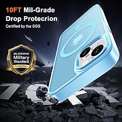 - for iPhone 14 Case, iPhone 13 Case, with 1 Screen Protector, Compatible with MagSafe, Magnetic Matte Slim Phone Cover, Translucent Frosted Back Shockproof Protection Bumper, Light Blue