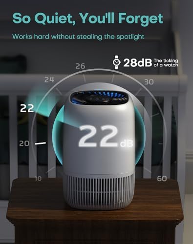 - Quiet with Essential Oil Option: Operates as quietly as 22dB, perfect for undisturbed sleep. The built-in essential oil tray lets you add 3–5 drops to infuse your space with soothing scents while enjoying purified air