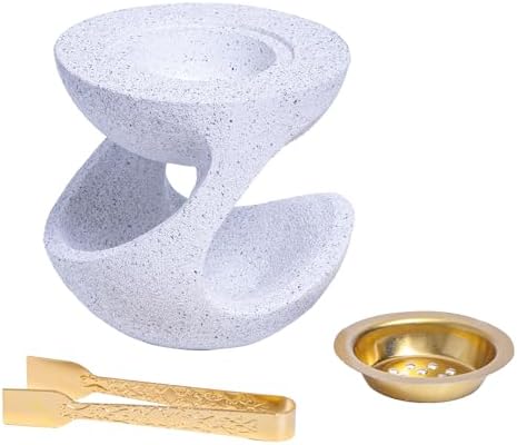 Bakhoor Burner Frankincense Resin Incense Burner for Charcoal with Tong, for Yoga Spa Aromatherapy Meditation, Home Office Decor (White)