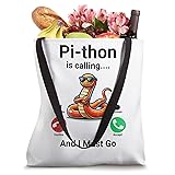 Celebrate Pi Day with this unique Pi-thon is calling design! Featuring a playful python snake forming the Pi symbol, this math Python Is Calling idea is perfect snake and mathematics lovers. Python Is Calling and I Must Go! Show your love for math and snake with our Pi-thon snake is calling design. This creative idea merges Pi Day with a python snake, making it a must-have math lovers. Perfect for classroom settings, Pi Day events... Python Is Calling and I Must Go 16” x 16” bag with two 14” long and 1” wide black cotton webbing strap handles. Made of a lightweight, spun polyester canvas-like fabric. All seams and stress points are double-stitched for durability, and the reinforced bottom flattens to fit more items and hold larger objects. Spot clean/dry clean only.