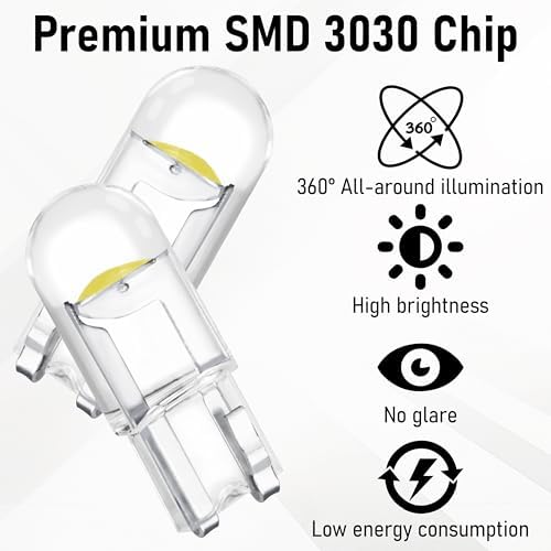 - Outstanding Brightness: Using high quality SMD 3030 chip to provide 360-degree dead-angle-free illumination with high brightness and no glare, this 194 led bulb features a high-precision fiber glass circuit board that dissipates heat quickly and ensures a long service time of 20,000 hours, providing safety for night driving