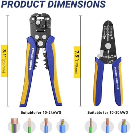 - Two Essential Tools in One Kit:Includes both an automatic wire stripper (10–24 AWG) and a manual precision stripper (10–20 AWG), providing versatile functionality for different tasks—ideal for both fast stripping and fine detail work