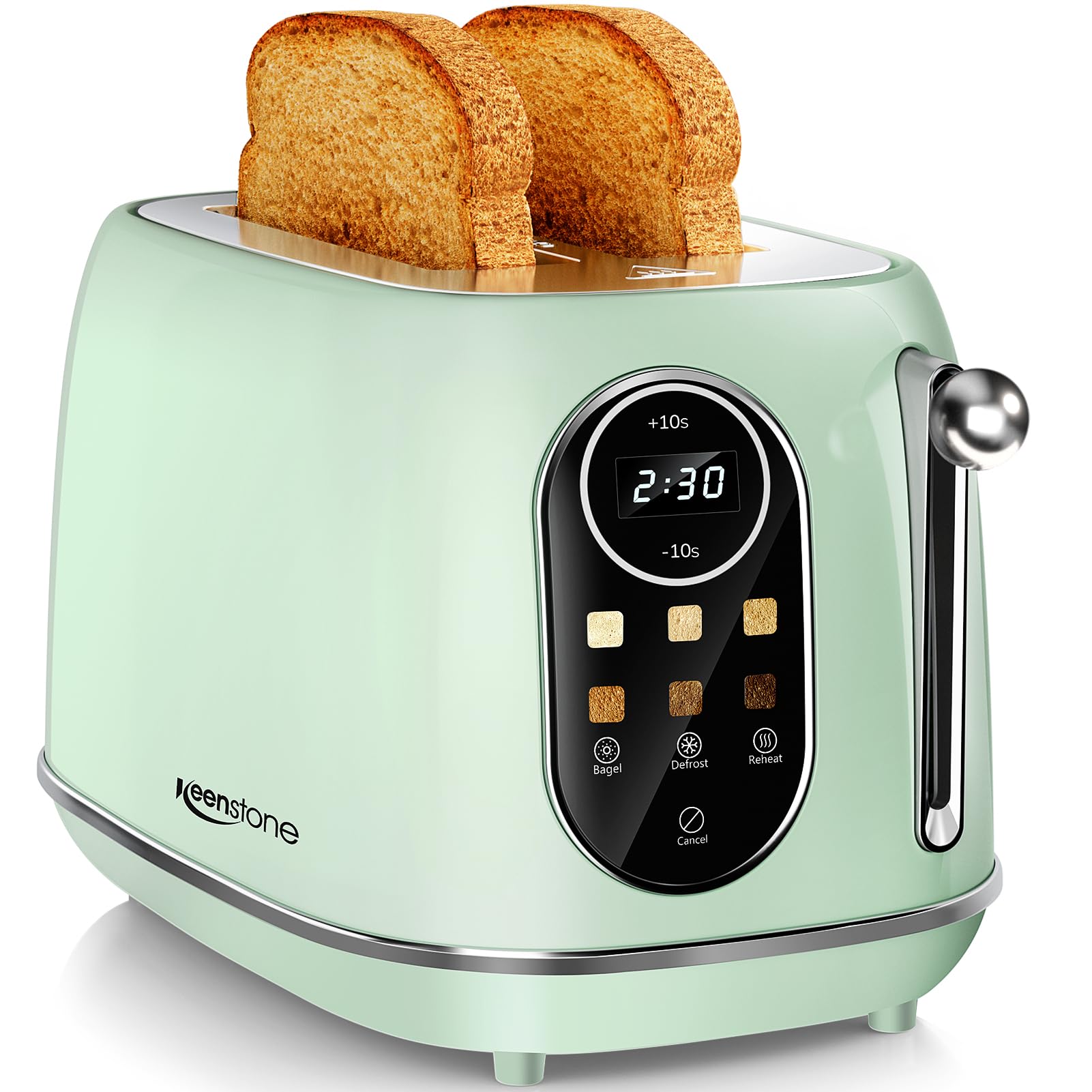 Keenstone Toaster 4 Slice, Digital Smart Toaster with TouchScreen, Memory Function, Single Slot Toasting, Timer, Reheat & Defrost for Bagels, Bread, Waffles, Muffin, Stainless Steel Kitchen Essentials