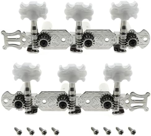 - Guitar tuning pegs are made of steel plate with nickel plated surface, engraved vintage pattern, fashionable and beautiful. Gear ratio: 1:14, steel body is strong and durable, rust and corrosion resistant, easy to cut iron string posts, brass gears.