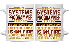 - Wanted a fun Systems Programmer gift? This 11oz ceramic mug stole attention with a bold, funny design made for Systems Programmers. Etched with the line Being A Systems Programmer Is Easy. It Was Like Riding A Bike. But the Bike Was On Fire. You Were On Fire. Everything Was On Fire, this mug caught the wild, driven vibe of Systems Programmer life. Forged from sturdy ceramic, it offered toughness and heat resistance—a trusty pick for daily coffee or tea runs.Systems Programmers who enjoyed a laugh picked this mug as a gem for their collection. Its 11oz size left room for favored drinks, and the solid handle eased grip. Crafted with a tough print, the fiery quote stayed sharp through dishwasher cycles, perfect for busy Systems Programmers on the move.More than just a mug, this item doubled as a prime Systems Programmer present. Friends, family, or coworkers after a funny nod to a Systems Programmer’s grind found a hit with this one. The Bike On Fire bit tied to the fast-paced world of Systems Programmer tasks, clicking with those who lived the role. Whether set on a desk or used at home, it added wit and style to any spot.Tough enough for microwave use, this ceramic coffee mug fused utility with a playful twist. Its pull hooked Systems Programmer fans who loved items that echoed their sharp humor. For Systems Programmer pros, this mug kicked off talks and tipped a hat to the wild, rewarding road of their work. Great for birthdays, holidays, or a quick shoutout, this funny Systems Programmer mug blended humor and quality into one slick find.