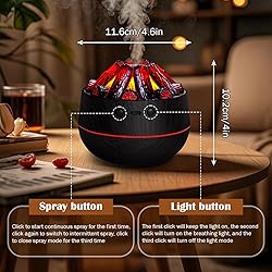 - Volcano Diffuser - Flame Essential Oil Diffuser & Bedroom Humidifier with LED Cold Flame Light - Charcoal Fire Humidifier Perfect for Study, Living Room & Bedroom 【Dark wood】