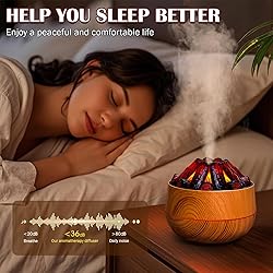 - Volcano Diffuser - Flame Essential Oil Diffuser & Bedroom Humidifier with LED Cold Flame Light - Charcoal Fire Humidifier Perfect for Study, Living Room & Bedroom 【Light Wood】