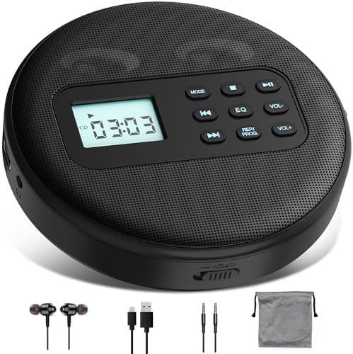 - Portable CD Player with Built-in Stereo Speakers:Enjoy crystal-clear music anywhere with this CD player portable!Perfect as a Walkman CD player,it features built-in stereo speakers and includes portable CD player with headphones for private listening.Its anti-skip portable CD players technology ensures smooth playback,whether you're jogging,traveling,or relaxing at home.Compact and stylish,it’s a must-have for CD music lovers