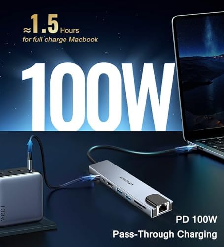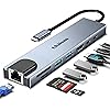 8 in 1 USB C Hub Multiport Adapter, USB C to HDMI Adapter, USB C to Ethernet Adapter, USB C to SD/Micro SD Memory Card Reader with USB 3.0/2.0, PD 100W Fast Charging Port, LAN USB C Docking Station USB Extender for Laptop, Macbook Air/Pro, Chromebook, Dell XPS, HP and More Type C Devices