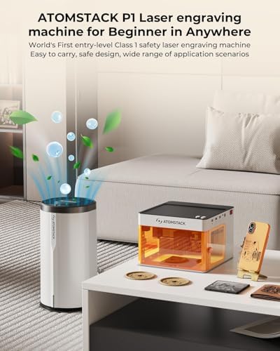 - Safe & easy for beginners, FDA/Class 1: ATOMSTACK P1 5W is the world’s first entry-level Class 1 laser engraver. Fully enclosed with auto-shutdown on tilt, enclosure detection, and USB safety lock. Viewing window and international safety certifications ensure extra protection—no goggles needed. Safe for home, office, or classroom. Built-in fixed-focus rod allows quick setup and eye protection. Start engraving in minutes—ideal for beginners