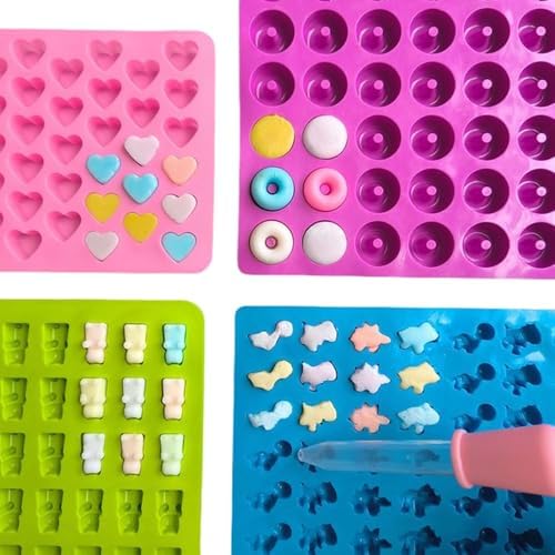 Gummy Candy Molds Silicone,With 2 droppers,5 mini silicone molds including small dinosaur,bear, small donut, heart, fortune cat Fudge Kids Chocolate Mold