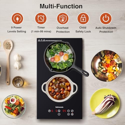 - 【Precise temperature control】 Double induction cooktop easily adjusts heat levels with a sensitive sensor touch, ensuring precise cooking temperatures. With 9 power levels and 20 temperature settings ranging from 80°C to 650°C, these two-burner electric cooktops provide extra cooking space, allowing you to prepare multiple dishes at the same time.