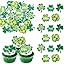60 PCS Edible Lucky Four Leaf Clover Cupcake Toppers Wafer Paper Green St Patrick's Day Party Cake Decorations Edible Shamrock Cupcake Picks for St Patrick's Day Baby Shower Birthday Party Supplies