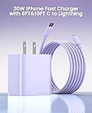 FEEL2NICE iPhone Charger Fast Charging 2 Pack Type C Wall Charger Block with 2 Pack [6FT&10FT] Long USB C to Lightning Cable for iPhone 14/13/12/12 Pro Max/11/Xs Max/XR/X,AirPods Pro,Purple