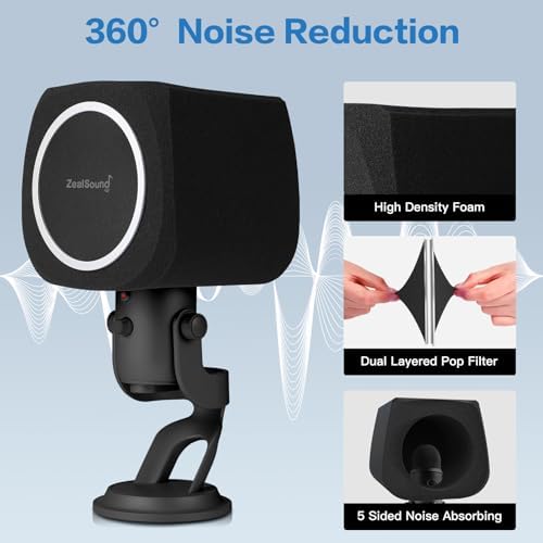 ZealSound Microphone Isolation Shield with Pop Filter,Microphone Isolation Ball Windscreen Foam Cover for Home Studio/Podcast/Sound-Absorbing for Yeti/Nano/AM8/SoloCast and More USB Mics