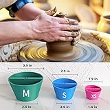 - Specification: Color: rose red, blue, green Material: ABS Product Size: M: 9.9 x 9.9 x 6cm/3.9 x 3.9 x 2.36 inch S: 7.4 x 7.4 x 5cm/2.9 x 2.9 x 1.97 inch XS: 4.8 x 4.8 x 4cm/1.89 x 1.89 x 1.57 inch Package details: 3 x rim cone pottery tool