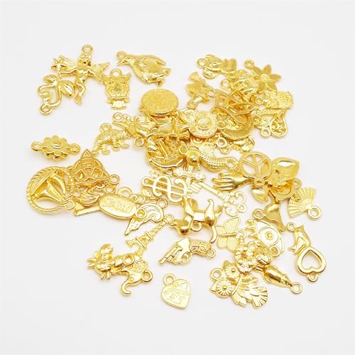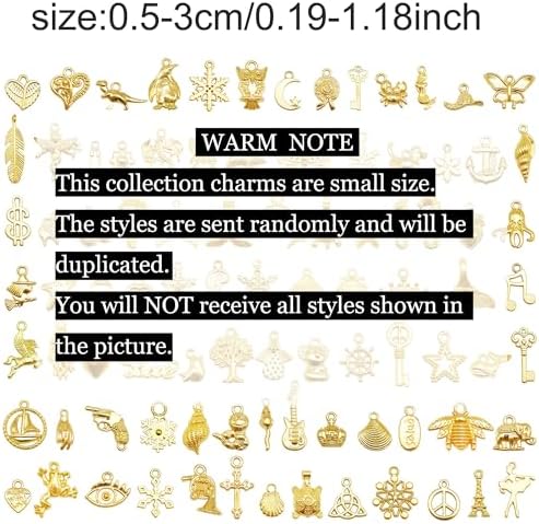 Julie Wang 200PCS Assortment Bulk Gold Tone Charms Alloy Pendants for Bracelet Necklace Jewelry Making Crafts DIY Small Size 5-30mm Random Styles