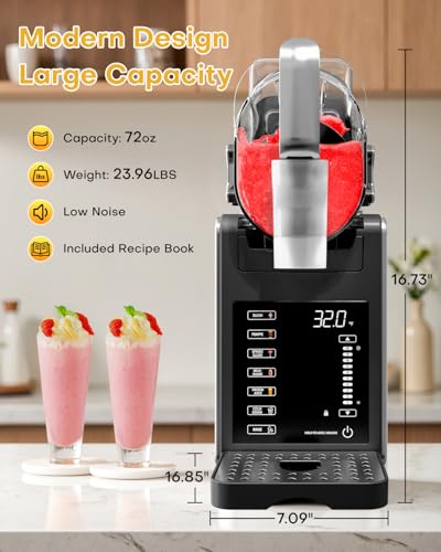 - Upgraded Large Capacity: slushie machine holds up to 72 oz of liquid, and a batch seats 8-9 people. Enough for families and even parties. Equipped with a powerful, high-performance compressor, it efficiently creates delicious smoothies in 15-45 minutes while minimizing power usage