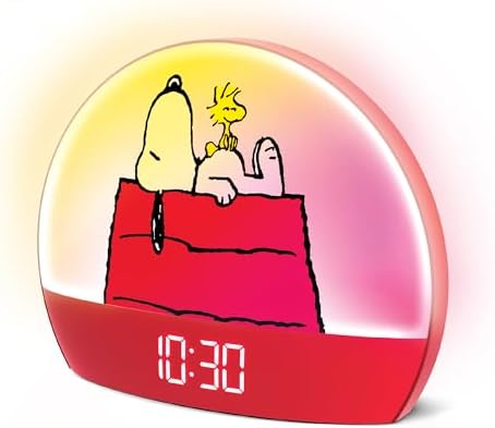 Peanuts Snoopy Sunrise Alarm Clock – Vibrant Snoopy Edition with Multicolor Lights, USB Charging, LED Display, Gentle Wake-Up Simulation, and Handy Snooze Function, Red