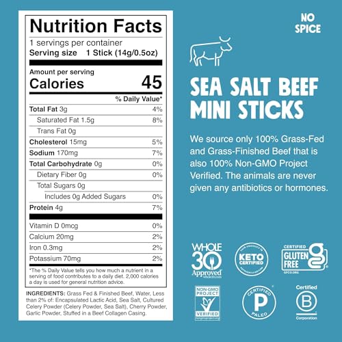 - Smooth Flavors: Our Sea Salt beef meat sticks are extra mild, seasoned with simply sea salt, a pinch of garlic, and celery juice.