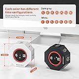 7 Pre-set Time: Secura eight-sided rotating timer offers 7 preset times (1/3/5/10/15/30/60 minutes), perfect for pomodoro timer. Just flip the timer with the numbers facing up to start the countdown. Pause the timer with the screen facing up, reset it with the back/"timer" side facing up. Visual Progress Bar: The unique 10-segment progress bar visually displays the passage of time, with each segment representing 1/10 of the set duration. A focus enhancement tool designed for ADHD and kids, offering clear visual cues to help better manage tasks. Stopwatch Function: This desk timer supports a maximum of 99 minutes and 59 seconds for count up, with an alert sound and flashing for 30 seconds when the time is up, and the screen will automatically turn off after 60 seconds. Different modes meet your various needs. Adjustable Volume & Rechargeable: 3 adjustable volume settings (Mute/Normal/Loud) make this productivity timer adaptable to various environments. USB charging design ensures continuous operation, saving you the extra cost of purchasing batteries. (Do not use while charging) Portable & Multi-Use: The cube timer is compact and stylish, easy to carry and fit into your pocket or bag. This ADHD timer is perfect for office, school, classroom, kitchen, work, meetings, study, reading, cooking, gaming, exercise, and tasks.