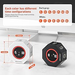 - Secura 8-Sided Visual Cube Timer - Your 360° Productivity PartnerMeet the Secura Gravity-Sensing Flip Timer – where minimalist design meets hyper-functionality. Designed for the modern multi-tasker, this rotating timer combines the Pomodoro Technique with ADHD to create the ultimate focus tool for the classroom, home, office, and gym.Core Innovations:Gravity Sensor: Just rotate to set the time and start the countdown.Visual: The 10-segment LED progress bar displays the passage of time.Auditory: 3-stage volume control (Mute/Normal/Loud)Specifications:Product Size: 2.36 x 2.36 x 1.1 inchProduct Weight: 0.14lbShell Material: ABSCharging Port: USB-CBattery Capacity: 800mAhSingle Charging Time: 2 hours and 30 minutesPackage Includes:1× Secura Pomodoro Timer1× USB-C Cable1× Manual