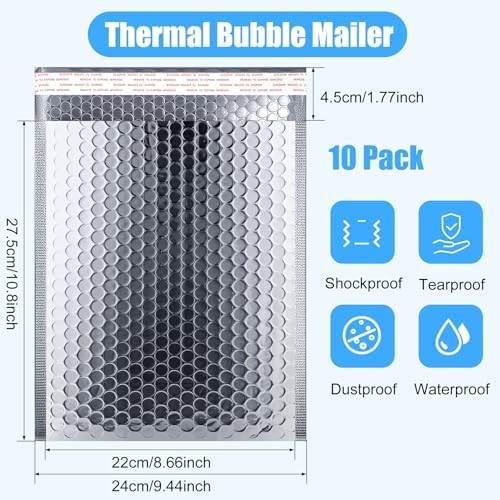 - Silver Thermal Bubble Mailers: This pack includes 10 bubble mailers, each with a usable size of 8×11''. They offer plenty of space for different items, making them a practical choice for your shipping requirements