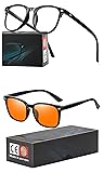 High-Quality Materials – OKANY anti-blue light glasses are crafted with a lightweight polycarbonate frame that boasts a German polymer structure. These materials make our glasses highly durable, impact-resistant, and easy to clean. The ergonomic one piece nose pad ensures an exceptional fit for any face shape, reducing pressure on the ears and bridge of the nose. Every detail is quality-focused, ensuring a perfect experience for our customers Protect Your Eyes & Sleep Better - Esports competitors often spend long hours in dark rooms, exposing their eyes to harmful blue light. Too much blue light can cause digital eye strain, headaches and poor sleep. Our gaming glasses protect your eyes from blue light exposure during extended gaming or screen use. They also help improve melatonin production, leading to better sleep quality. Wearing our glasses, especially after 6pm, can help improve your body's circadian rhythm Dual Anti-Reflective Coatings (AR) - These lenses offer 100% UV400 protection, blocking harmful UVA/UVB/UVC rays to prevent eye aging, macular degeneration, and cataracts. The built-in UV protection ensures your eyes are shielded from both daylight and screen radiation, promoting all-day eye health. Additionally, the dual anti-reflective (AR) coating reduces glare and reflections, improving visual clarity and reducing eye strain, making it ideal for long Digital equipment Fashion Style and Ideal Gifts – Classic square frame design keeps you looks professional and fashionable while working or gaming. Beautiful gift package with the blue light blocking glasses is a great gift for your friends and loved ones Why Choose Us – We are committed to providing high quality products and excellent service to our customers. If you have any questions, please feel free to contact us, and we will provide you 24-hours customer service until you are satisfied