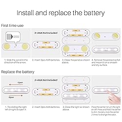 3 Color Modes, Dimmable and Memory: Quickly click the center white ball 2 times to change the light color. Press and hold it to dim the light. Press and hold it again to brighten the light. Our tap light will remember the last color and brightness Ultra-high Quality Light Source: 8 pcs 0.5W 140 Lm/W Ra 90 LEDs output 100 lumens with high CRI. Uses high light transmittance lens, our under cabinet lights offer higher luminous efficiency, ensuring superior brightness while consuming less power Battery Operated: Each stick on light is powered by 3 AAA batteries (not included). Uncomplicated and safe, no worries about the risk of electric shock to children Split Design and Easy Installation: Just slide it, our dimmable push closet light is easy to remove and reinstall when the battery needs to be replaced. Customized ultra-adhesive pads ensures a stable installation and can be easily mounted on any surface Mini Size and Wide Application: 7 inch samll size makes our touch light perfect for anywhere you need extra light, such as closet, cabinet, counter, wardrobe, kitchen, bedroom, bathroom, classroom, laundry area, locker, drawer, dollhouse, safe box
