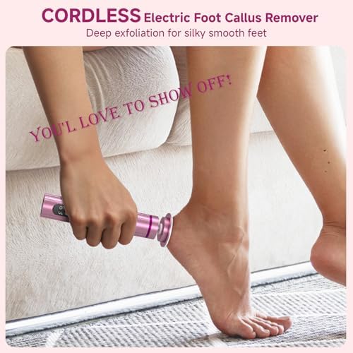- 【Cordless Design, Rechargeable Electric Callus Remover for Feet】Unlike traditional corded electric callus remover for feet, our electric foot filer is completely wireless design. Wireless Foot file electric powered by 2000mAh high-performance battery and fully charged in 3 hours, but also delivering more than 4 hours continuous operation. Type-C fast charge, supports simultaneous charging/use, without being restricted by wires. Electric foot file runs wireless making it travel friendly and carry.
