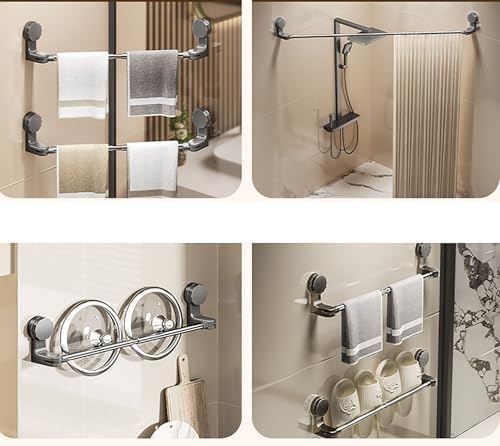 Scalable Suction Towel Rod, 11.8 Inch - 23.6 Inch Black Stainless Steel Scalable Rod for Towel, Shoes, Lid in Kitchen and Bathroom