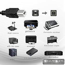 USB A 2.0 male to Type B male cable 6.6 feet (2 meters) long cord, PVC material, black Data transfer speed is 480mbps Connect a USB port on your PC or Mac to a printer, keyboard, mouse, modem, or other USB-B compatible device input using this print cables Compatible with HP, Canon, Dell, Epson, Lexmark, Xerox, Samsung, Cricut cutting machine and More