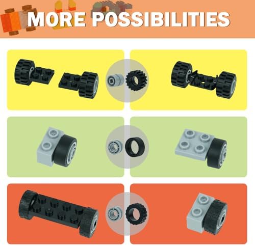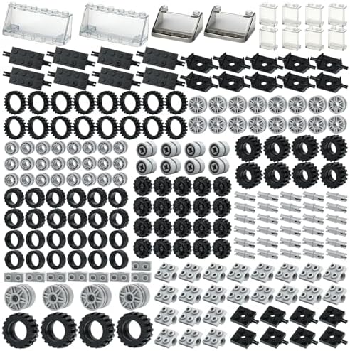 MALEKO Wheels and Axles Sets, 224pcs Car Parts and Pieces Tires Accessories Building, Construction Bulk Bricks