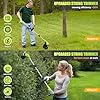 - 【The weed trimmer easy to use】Compared with other weed wacker, Aokia electric weed wacker is light in weight, only 3.72 lbs, making it easier to carry. Easy to operate,even the elderly and women can easily control it. Much quieter than traditional gas-powered grass trimmer. lawnmower has 2 detachable extension pole,weeder to be divided into 3 different lengths, 32 inches,48 inches and 65 inches,can be used for lawn weeding, edger lawn, trimming bushes or flower beds and pruning tree branches.