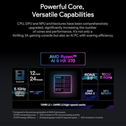 - [Immersive OLED Visuals with 144Hz Refresh Rate] Enjoy stunning visuals on a 7-inch 1920x1080 OLED screen with a 144Hz refresh rate, HDR support, and 800 nits peak brightness. With deep blacks and vivid colors, this display delivers cinematic contrast and ultra-smooth motion clarity for premium handheld gaming in any lighting condition, indoors or outdoors.