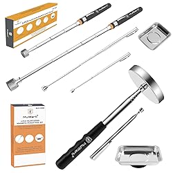 5 pcs Magnetic pickup Tool: This telescoping magnetic pickup tool features a sturdy stainless steel body and a Magnetic tray . Its compact design allows it to easily fit into your magnetic tool kit. Whether you're a mechanic, craftsman, or a DIY enthusiast, having these magnetic sticks on hand is a great addition to your telescoping magnetic tool kit. Ergonomic Mechanic Magnet: This telescoping magnetic pickup tool includes five magnetic pick up tool ranging from 1.3lb to 15lb. The tools offer extension of different lengths: 1.5lb (4.6 to 19.7 inches), 3lb (5.3 to 25.5 inches), 10lb (7.1 to 26 inches), and 15lb (7.2 to 30.9 inches). Unique tetelescoping magnet tool kit for the men, women, dads, husbands, boyfriends, guys, boys. Long Lasting Magnetic Sticks: This telescoping magnetic pick up tool is built to last. Its surface coating provides reliable protection, ensuring complete resistance to rust and corrosion. To maintain optimal performance, it's advisable to avoid prolonged exposure to water. Durable & Sturdy Pole: The enlarged and thickened pole enhances the tool's sturdiness. Crafted from heavy-duty stainless steel, it ensures durability and anti-corrosion. The rubber ergonomic grip adds comfort to handling. Extendable & Robust Magnet: The magnetic stick extends from 8.7” to 33.3” and magnetic telescoping pen extends from 4.6" to 19", providing versatility and easy portability in tool bags. A powerful 35LB magnet efficiently picks up items like hammers, wrenches, and screws.