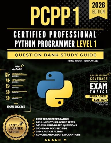 PCPP1™ – CERTIFIED PROFESSIONAL PYTHON PROGRAMMER LEVEL 1 | QUESTION BANK STUDY GUIDE | 8 FULL LENGTH PRACTICE TESTS, 360 SYLLABUS BASED QUESTIONS, 350+ EXAM-FOCUSED TIPS, 355+ CAUTION ALERTS,