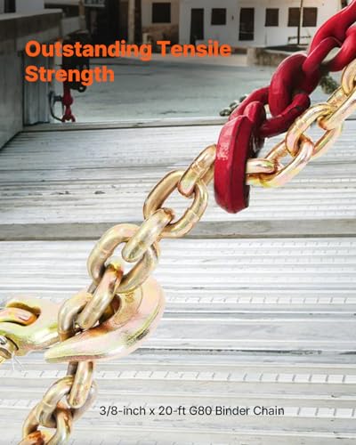 VEVOR 7100 LBS Transport Binder Chain, 3/8"x20' G80 Tow Chain with Grab Hooks, Galvanized Manganese Steel, DOT Certified, 2 Pack for Dock Factory Construction Site