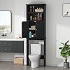 Walsunny Over The Toilet Storage Cabinet, Bathroom Organizer with Open Shelves and Double Doors, Space Saving Toilet Storage, Black