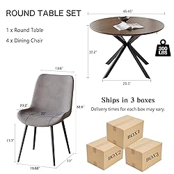 Stylish Dining Set for 4: This modern round dining table set includes a 46.4" round table and 4 comfortable PU leather chairs, perfect for family meals, gatherings, or casual dining. Durable Construction: Crafted with a reinforced MDF tabletop and supported by a sturdy X-shaped carbon steel base, the table is built for stability and longevity. The matching chairs feature high-quality PU leather upholstery and durable iron frames. Comfortable U-Shaped Chairs: The U-shaped design of the chairs provides ergonomic support, offering a comfortable seating experience. With a durable PU leather surface and stylish black legs, these chairs combine modern aesthetics with practical comfort for long-lasting use. Space-Saving Design: When not in use, the chairs can be tucked neatly under the table to maximize your space, making it ideal for smaller dining rooms or kitchens. Easy Assembly & Maintenance: This dining set is simple to assemble with the included instructions, and it is easy to clean and maintain, ensuring lasting beauty and function.