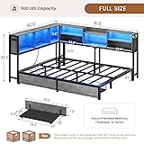 【Cozy & Compact Bed Frame】 The corner bed full size creates the ideal cozy spot in your child's bedroom. The compact beds are a great space-saving solution for rooms where space is limited. offering a place to lounge, sleep, and even store, so your teen can relish in a treasured spot that's all their own. The wooden boards for the open shelves and drawers are FSC certified. 【Bookcase and Shelves】 The integrated storage headboard and bookcase side rails work wonders for calming clutter, Ideal for avid young readers, this kid's bedroom corner bed unit makes it easy to grab your favorite book from the comfort of your bed. High quality FSC certified wood boards. 【2 Underneath Storage Drawers】 Equipped with 2 large-capacity storage drawers under the corner bed. Each has 4 smooth wheels that can be easily pulled out and closed, making it easy to store all kinds of bed linen, clothes, etc. Each drawer is also designed with a closing buckle, that prevents closed drawers from opening indiscriminately. 【Smart LED Lights】The corner bed is equipped with light strips, which have a variety of colors and light patterns to choose from. You can also adjust the light change by APP or key control, In addition to directly adjusting the light in the APP, you can also set the music, voice, and timing modes, to discover more wonderfully! 【Charging Station】 The AC power supply (2 AC outlets + 2 USB ports) is located on the bedside of the full corner bed, perfect for charging your phone, tablet, or headphones while entertaining in bed without having to get up. 【Mattress Slide Stopper & Plastic Corner Protectors】 Each bed frame is equipped with 2 mattress slide stoppers, effectively preventing frequent use of the mattress brought about by sliding; 4 exposed bed frame iron corner stickers affixed with plastic corner protectors to reduce the damage caused by bumping. 【Easy to Assemble】The full size corner bed frame comes with an instruction manual with clear part numbers and detailed installation steps, assembly tools, and can be easily and quickly assembled. If you have any questions or concerns about the corner full bed with storage before or after purchase, please feel free to contact us, we are always at your service. Tips: The bed comes in 2 boxes and may NOT arrive on the same day. Please wait until the 2 packages arrive before installing them.
