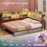 - Hasuit full size corner bed frame with storage bookcase and underneath drawers, Storage daybed with charging station and LED lights. Kids and teenager bedroom set.