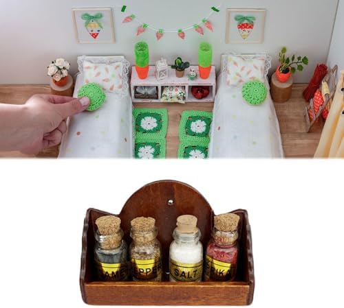 Description: - 【 Craftsmanship】: The Dollhouse Wall Shelf features a carefully crafted design with details and proportions, ensuring seamless integration - 【 Material】: Made from wood, Wall Hanging Rack is meticulously sanded and painted to create lifelike details that enhance the realism and dimensionality of your dollhouse - 【Interactive】: The condiment Jars the rack are movable, allowing you to arrange them as you like, adding an of interactivity and fun for enthusiasts - 【1:12 Dollhouse Accessory】: Dollhouse miniature furniture model suitable for 1:12 miniature dolls house and store decorations, landscape, doll house accessories,scene desktop mini decoration - 【Gifts】: Wood mini Kitchen Accessory, nice birthday holiday gifts for kids boys who like dollhouse playSize Chart:length : 5.5cm/2.17inchthickness : 1.5cm/0.59inchheight : 4.5cm/1.77inchPackage Includes:1 Dollhouse Wall Shelf with 4 condiment JarsNote:1.This is not infant toy , please take away from children to avoid eating.2.Please allow slightly errors 1-2cm/0.39-0.79inch differences due to manual measurement.