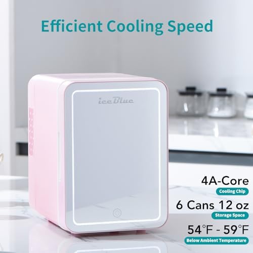 - 【Three-digit Luminous Mirror】This IceBlue mini fridge for skincare, oversized high-definition mirror and LED lights mini refrigerator are designed to help you easily apply skin care products and cosmetics in different environments and lighting